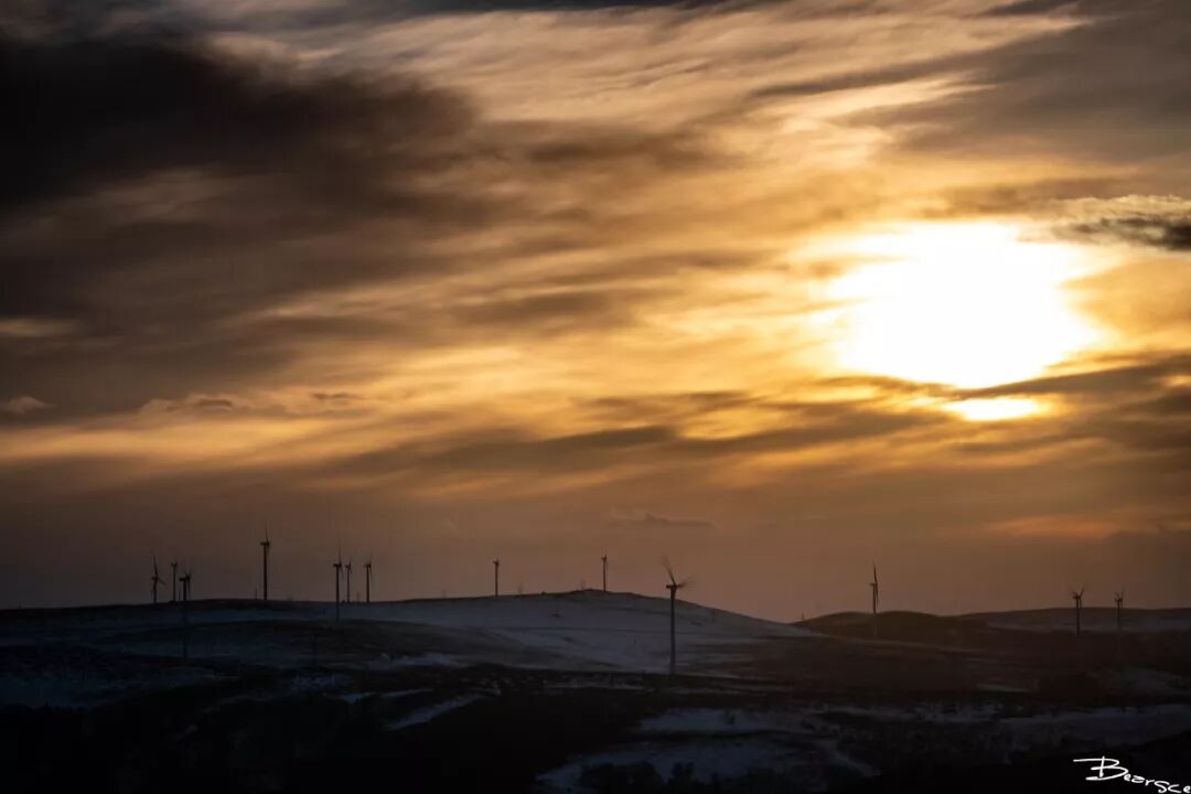 构图:草原上70-200mm绝对可以算上标头了,上文中的照片采用70mm视角。山谷占到了画面比例的绝大部分,远处的风车做点缀,夕阳增加画面色彩。如果使用长焦端,还可以拍摄风车的特写。