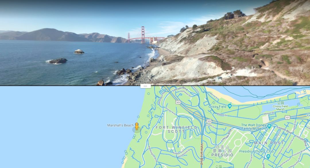 拍摄大桥最经典的机位在其北岸Battery Spencer的山坡上,打开街景地图会看到密密麻麻的记录点,所以位置十分好找。